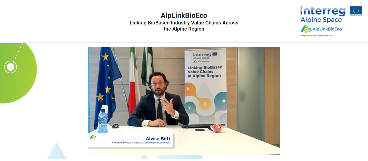 Milano, 31 marzo 2021 – Si è chiuso oggi, con una conferenza online, il progetto Interreg europeo AlpLinkBioEco, progetto nato tre anni fa nell’ambito della Strategia macroregionale Alpina EUSALP con l’obiettivo di sviluppare proposte interregionali per il potenziamento delle filiere innovative operanti nel settore della bioeconomia circolare. All’evento sono intervenuti il Presidente della Piccola Industria di Confindustria Lombardia Alvise Biffi e l’assessore all’Ambiente e Clima di Regione Lombardia Raffaele Cattaneo.