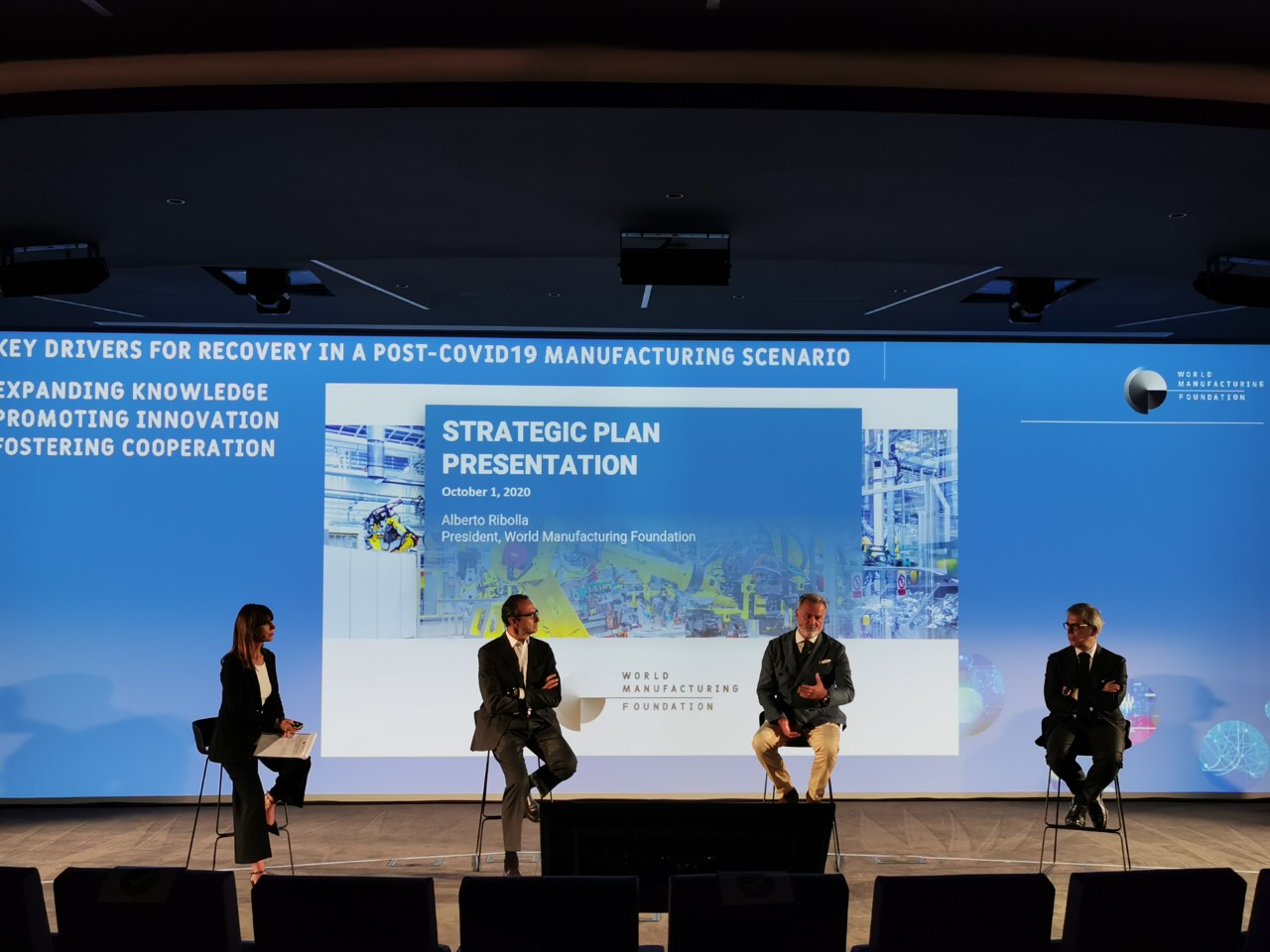 Bergamo, 1 ottobre 2020 – Presentato oggi, presso la sede di Confindustria Bergamo inserita nell’innovation district Kilometro Rosso, il Piano strategico 2020-25 della World Manufacturing Foundation. Alla conferenza stampa di presentazione sono intervenuti Alberto Ribolla, Presidente WMF, Stefano Scaglia, Presidente di Confindustria Bergamo, Fabrizio Sala, Vicepresidente di Regione Lombardia, Marco Taisch, Scientific chairman della World Manufacturing Foundation e Marco Bonometti, Presidente di Confindustria Lombardia.