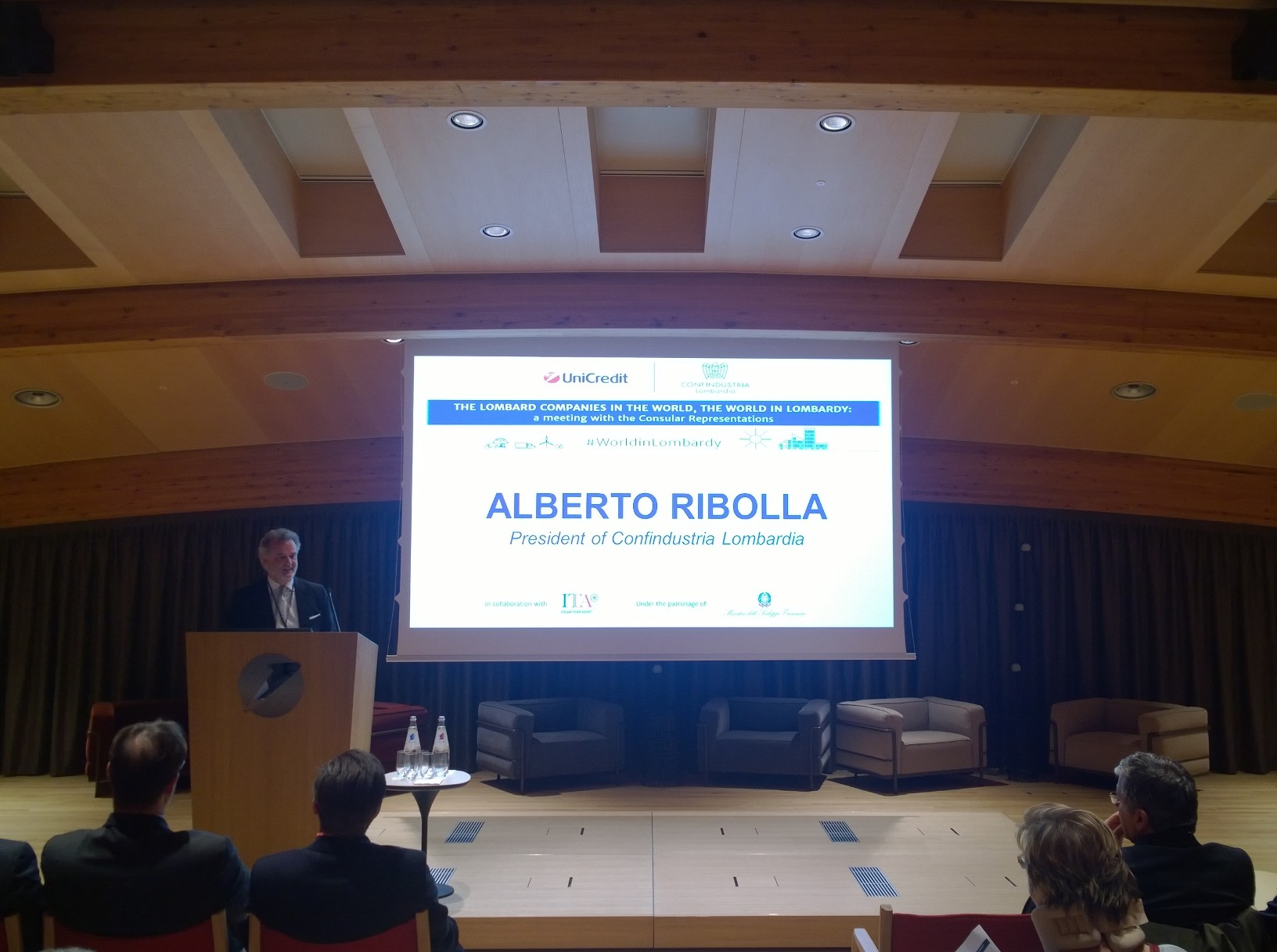“La Lombardia è una regione a vocazione internazionale, ospita 4.721 imprese a partecipazione estera e il 47% di tutte le multinazionali presenti in Italia. Il nostro export rappresenta il 30% circa di quello nazionale e più del 40% è destinato a mercati extra UE, inoltre, la nostra è la migliore regione del sud Europa per attrattività. Le imprese lombarde hanno poi mantenuto una buona performance anche durante la crisi economica: dal 2009 le esportazioni hanno registrato un tasso di crescita del 15% rispetto ai livelli pre crisi. L’alta internazionalizzazione è anche in uscita: le nostre imprese hanno investimenti esteri, joint venture e sedi commerciali in tutto il mondo. Tutto questo è il risultato di un’elevata competitività dell’intero sistema lombardo” ha dichiarato il presidente di Confindustria Lombardia Alberto Ribolla.