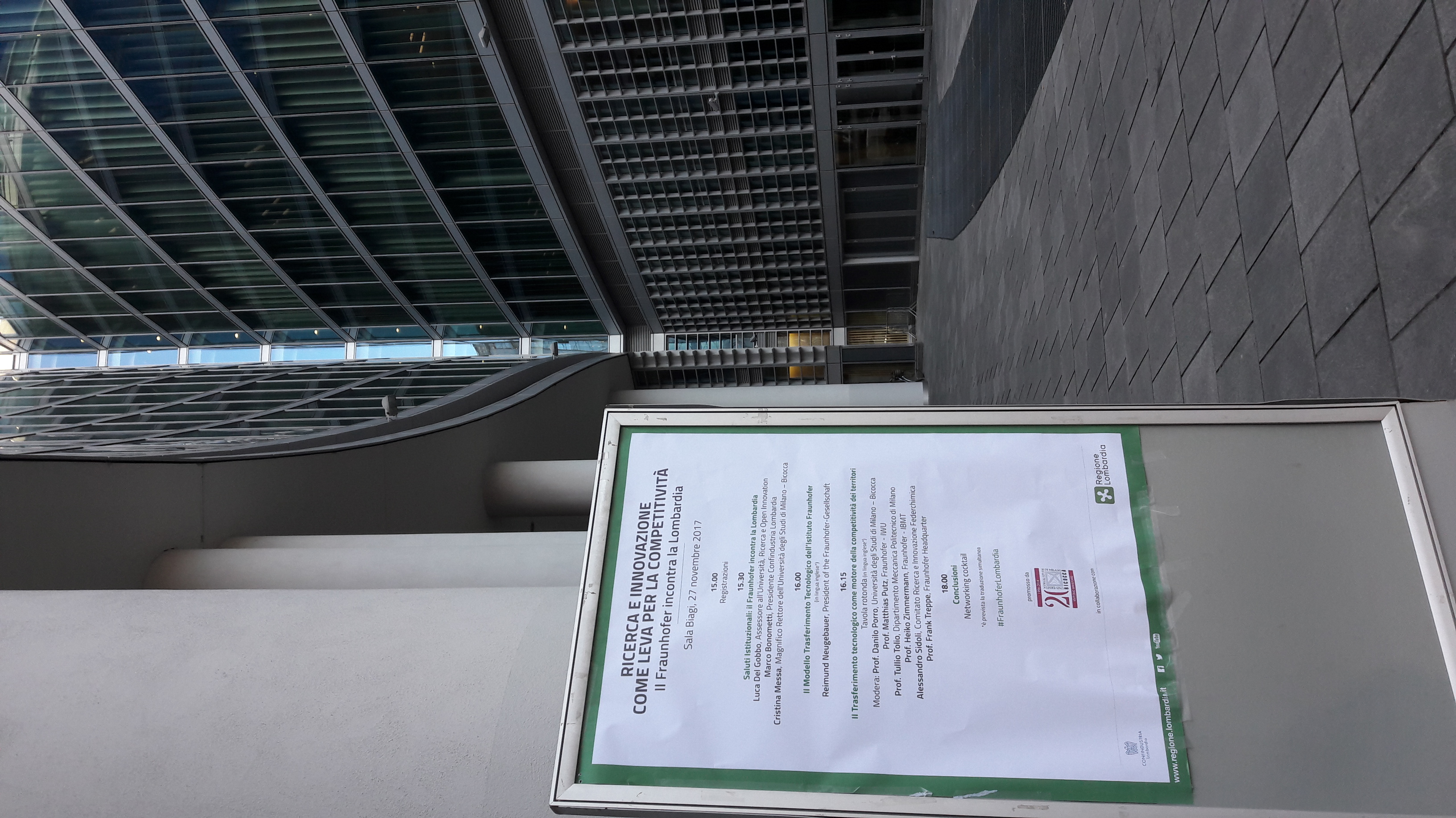 Milano, 27 novembre 2017 – Oltre 150 soggetti rappresentati tra imprese, università, operatori di ricerca, istituzioni e categorie economiche hanno partecipato all’evento “Ricerca e Innovazione come leva per la competitività: il Fraunhofer incontra la Lombardia”, aperto oggi - nella sala Biagi di Palazzo Lombardia – dal saluto dell’assessore regionale all’Università, Ricerca ed Open innovation, Luca Del Gobbo.