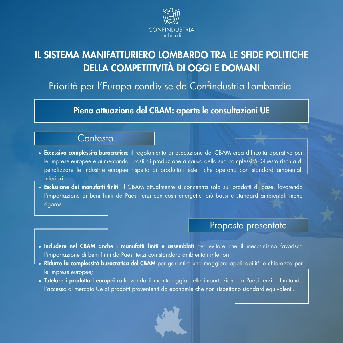 Confindustria Lombardia, nel documento "Priorità per l'Europa Condivise da Confindustria Lombardia”, ha posto tra le principali urgenze del sistema manifatturiero lombardo la corretta gestione del carbon leakage, tema cruciale per garantire la competitività delle imprese.
