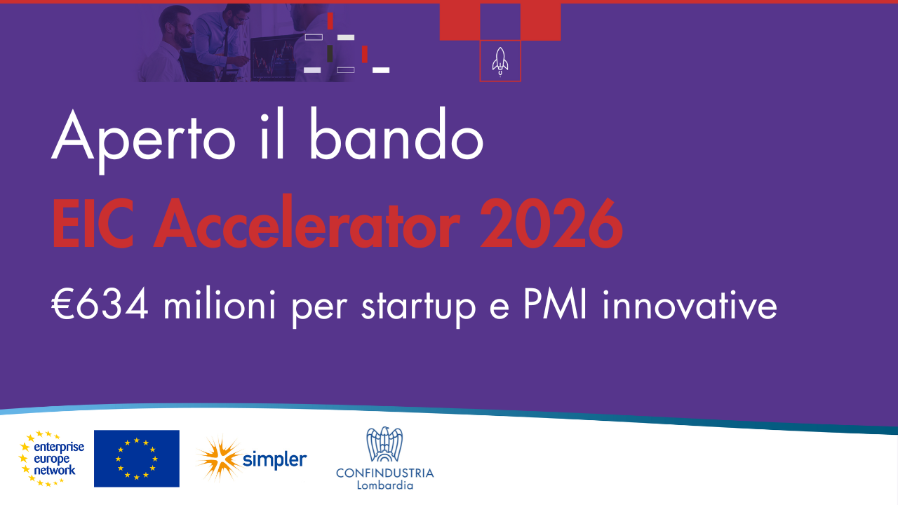 L’EIC Accelerator, che si inserisce all’interno dell’EIC Work Programme 2026 - supporta lo sviluppo e il scale-up di tecnologie di frontiera e soluzioni ad elevato impatto, in grado di creare nuovi mercati o trasformare quelli esistenti.