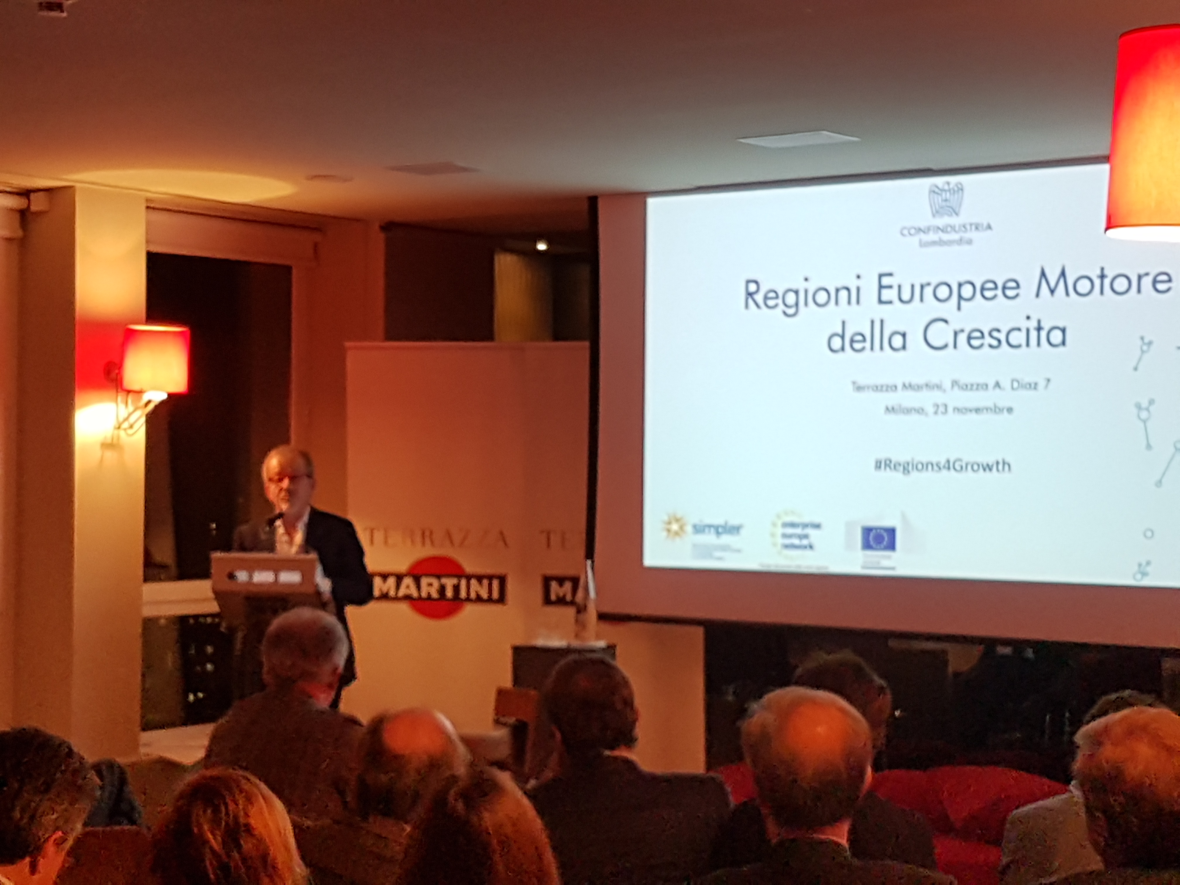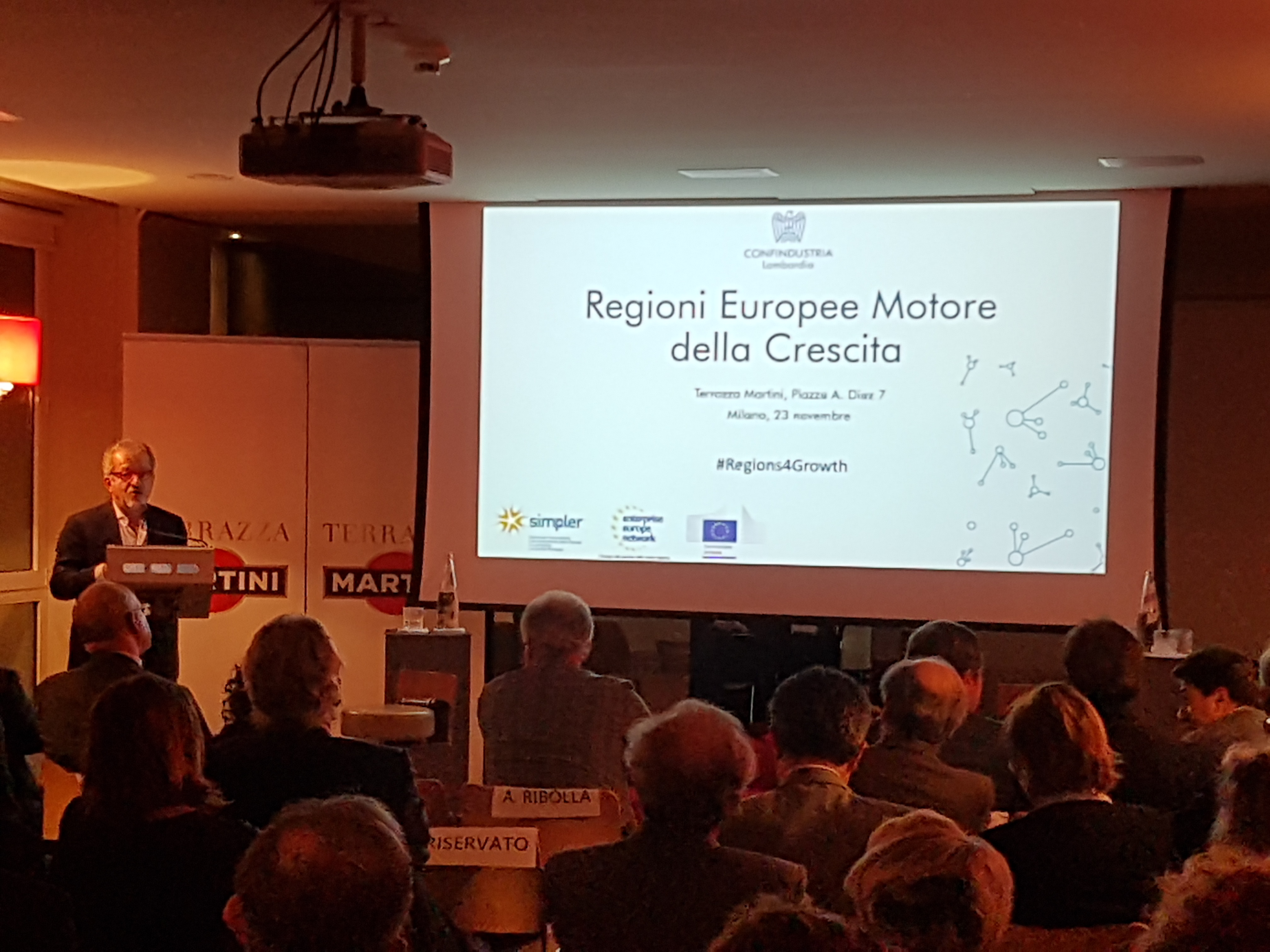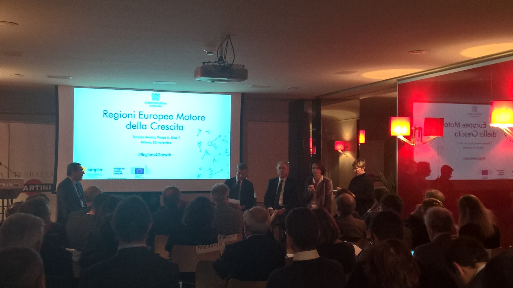 Il 23 novembre, a Milano, si è svolto il convegno “Regioni europee motore della crescita” organizzato da Confindustria Lombardia. L’evento, che ha visto la partecipazione del Presidente Maroni, dell’Assessore Parolini e di rappresentanti della Commissione europea e del sistema Confindustriale, si inserisce nel quadro delle azioni avviate all’interno del Piano Strategico #Lombardia2030, in merito alla centralità dell’Europa e delle sue politiche come elemento per la crescita delle nostre imprese e dei nostri territori. 80 i partecipanti tra PMI grandi imprese, università, stakeholder regionali e addetti ai lavori.